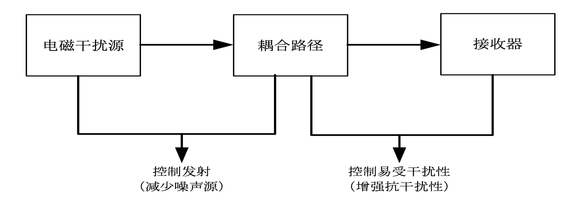 保证设备电磁兼容性能的基本技术思路是:控制干扰源的发射、抑制干扰信号的传播及增强设备的抗干扰能力。